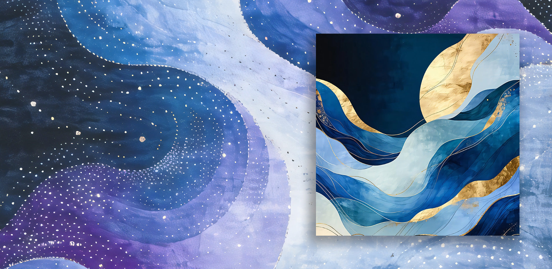 Inspired by Cosmic Swirl Abstract, Celestial Echo Swirls of Sapphire, and Spectrum Swirl Abstract.This theme merges spiritual symbolism with modern abstract art. It uses deep sapphire, indigo, monochrome abstracts and iridescent hues to evoke the vastness of the cosmos and the meditative quality of swirling galaxies.