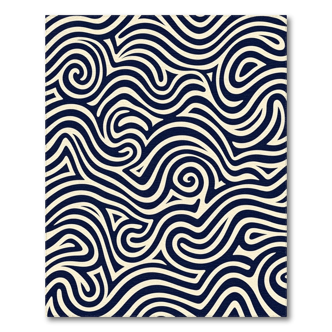 Navy Cream Swirling Waves Rug