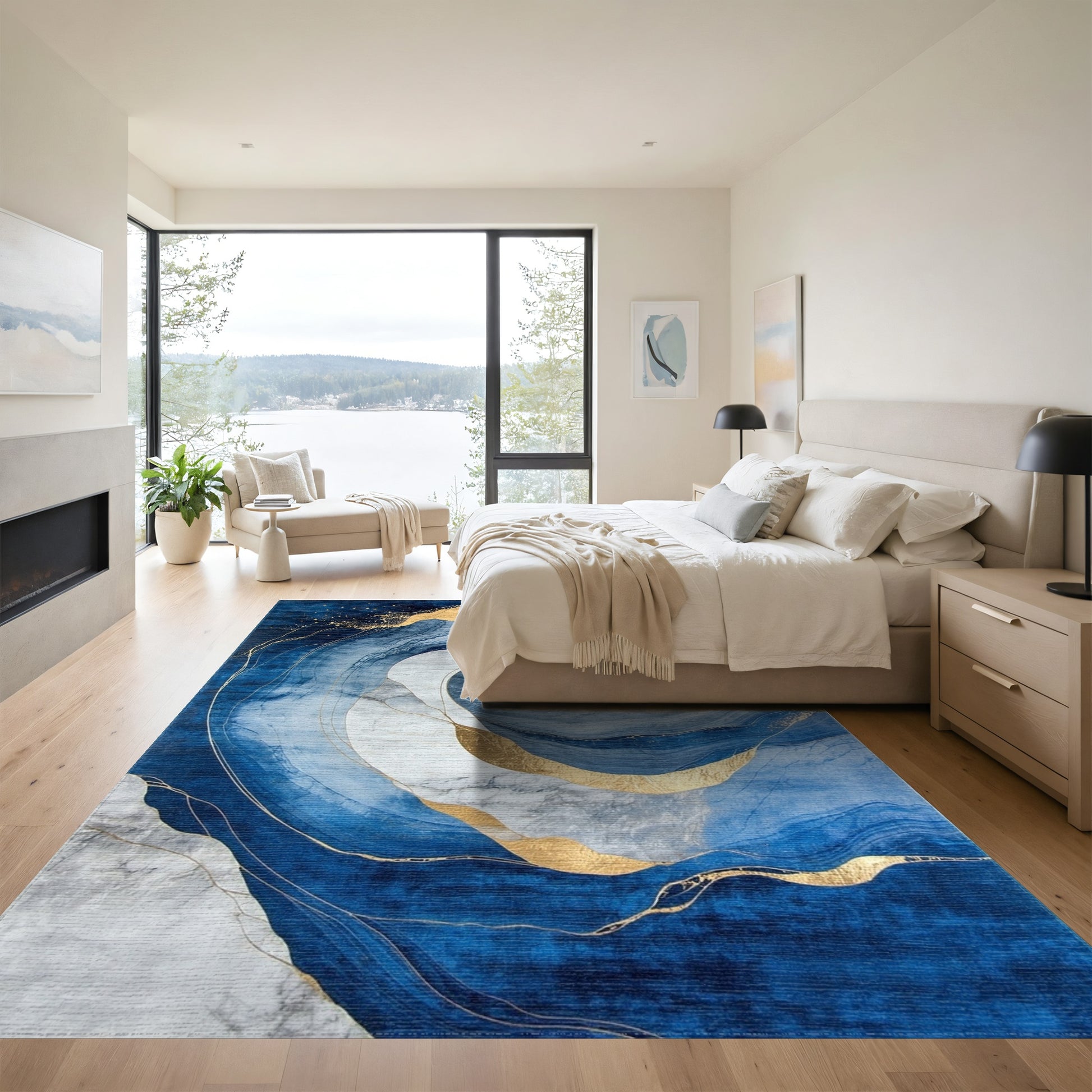 - Modern, artistic: Add a piece of modern charm to your bedroom collection. Designed with the art of minimalism, this rug is sure to provide your bedroom with coziness.