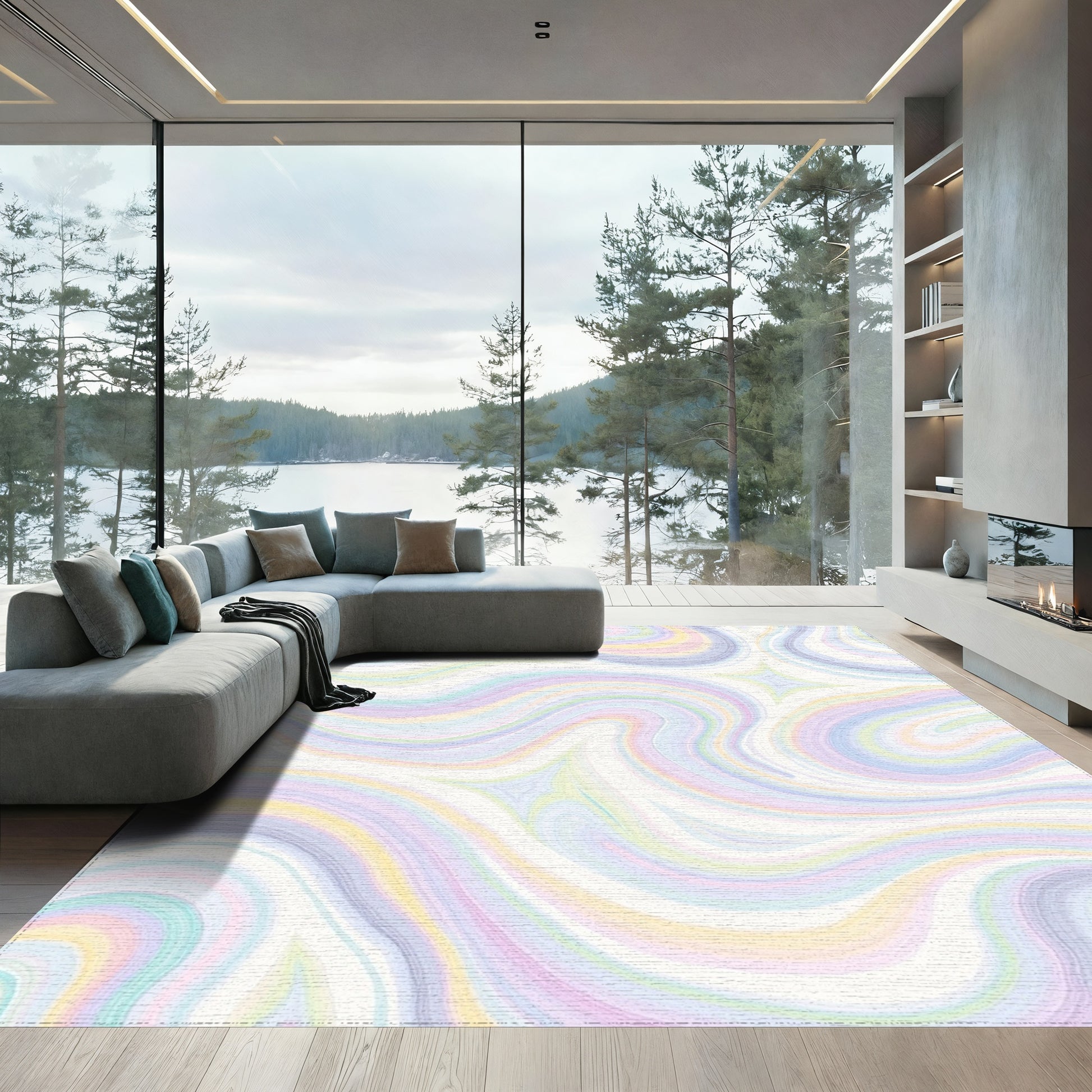 Flatwoven High Traffic Area Rug, Pastel Wavy Swirl Rug, Non Slip, Stain Resistant, Washable Area Rugs for Living Room, Bedroom Overview: