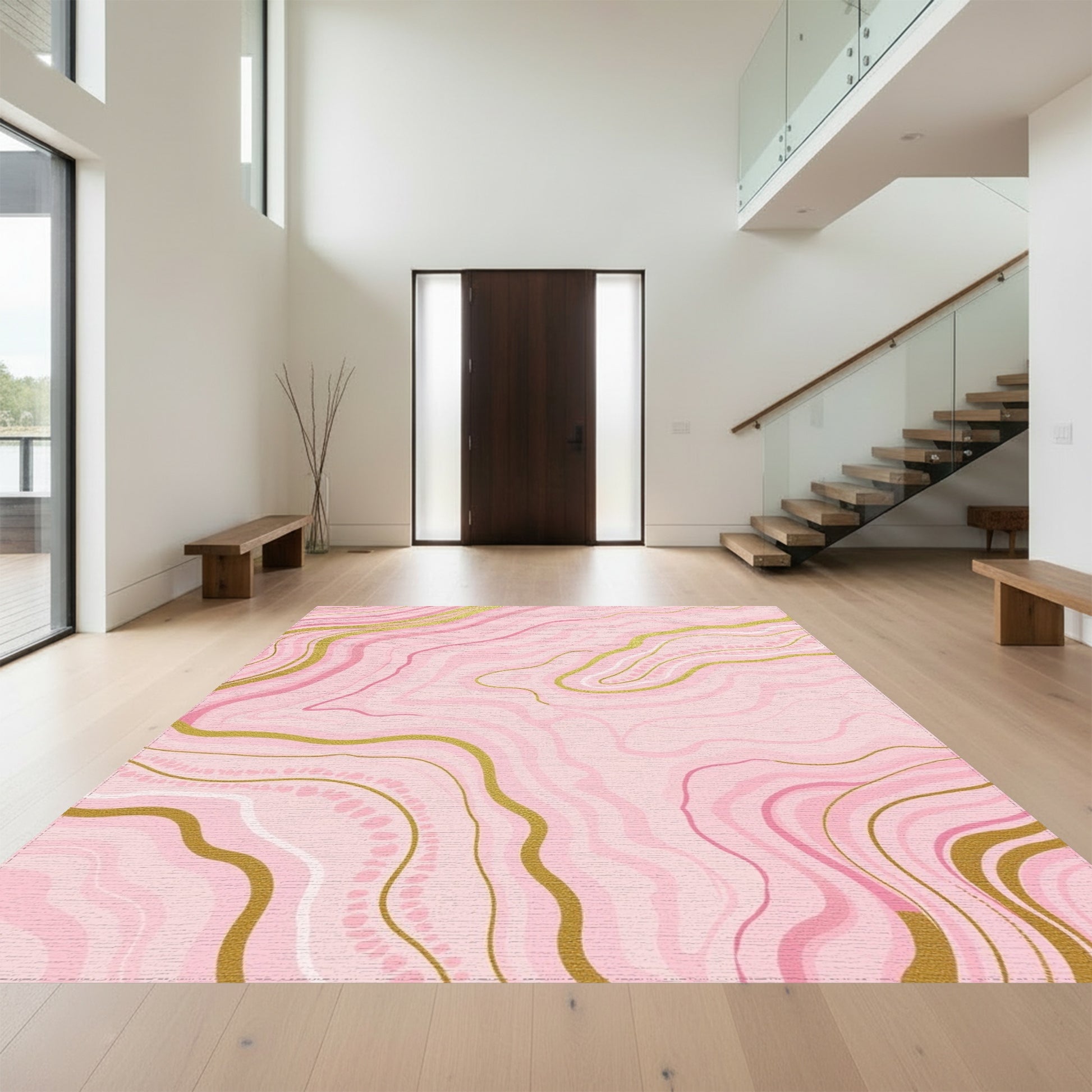 Pink Gold Marble Vein Rug