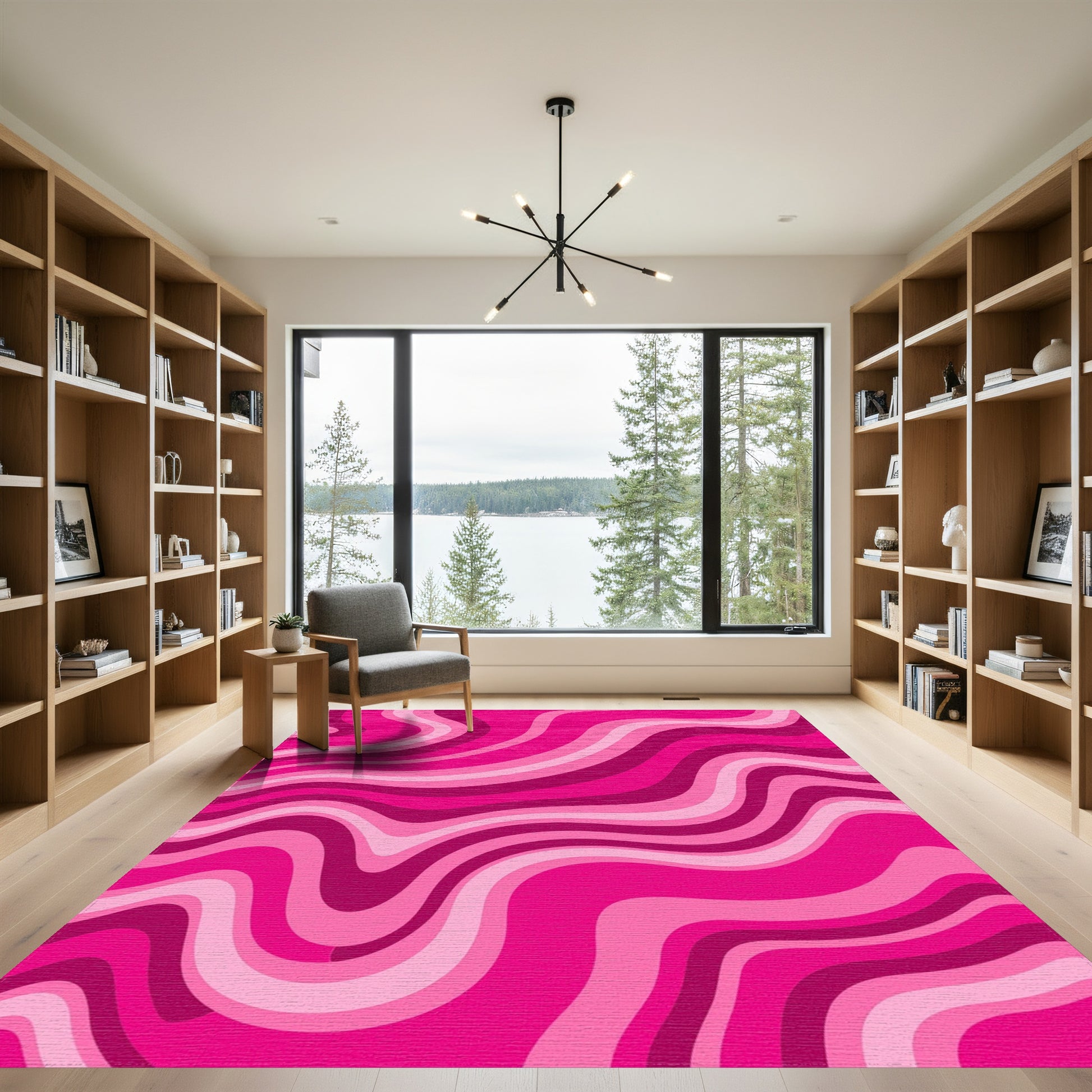 Flatwoven High Traffic Area Rug, Pink Wavy Fluid Rug, Non Slip, Stain Resistant, Washable Area Rugs for Living Room, Bedroom Overview: