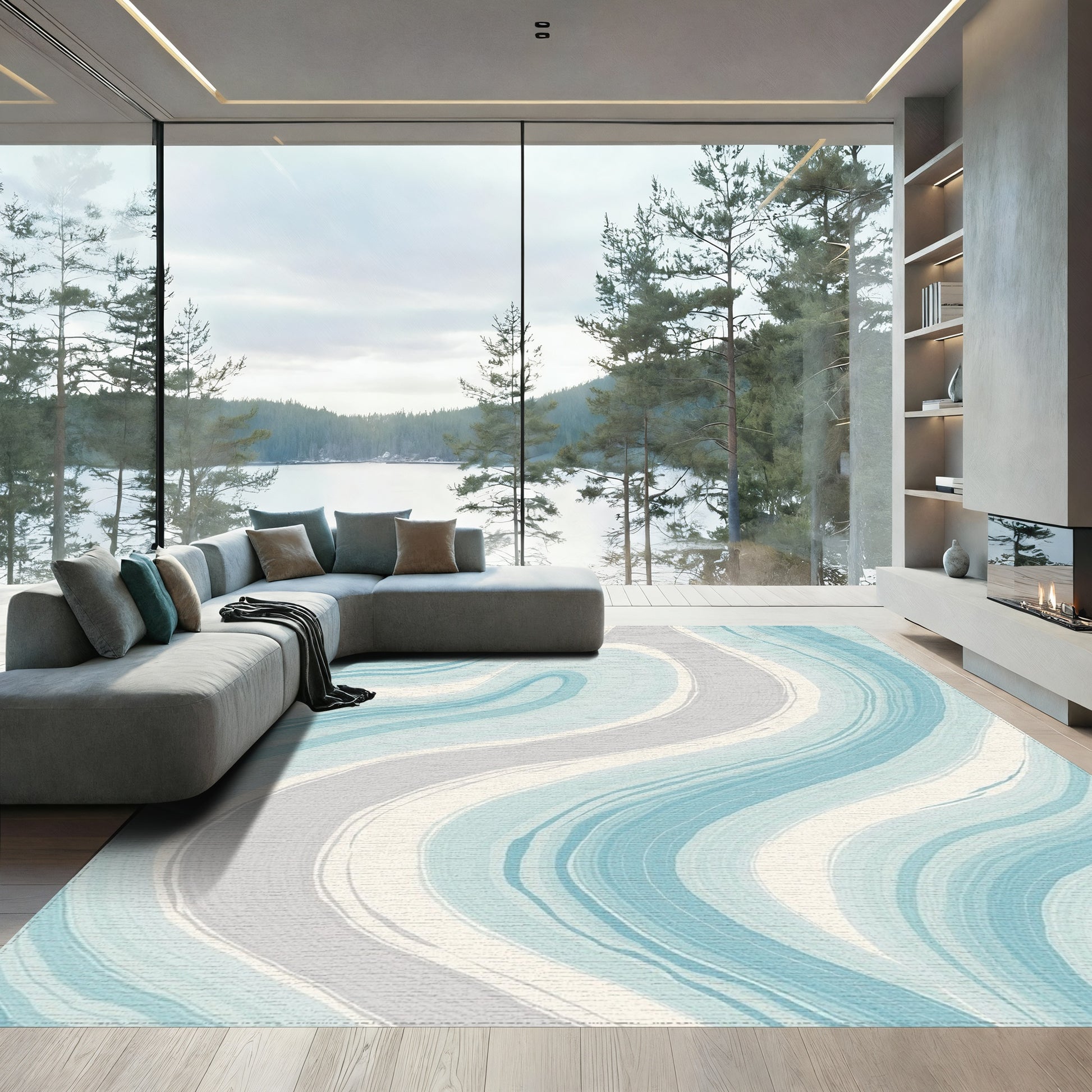 Teal Gray Fluid Marble Rug